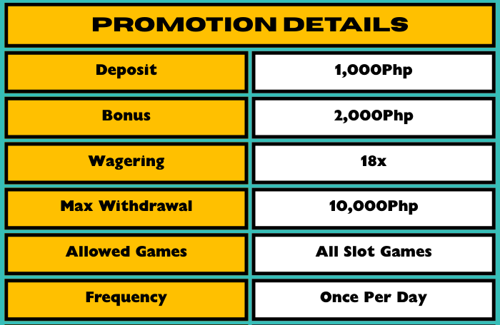 ✅ Get an EXTRA Php 2,000 added to your deposit included in this promotion.